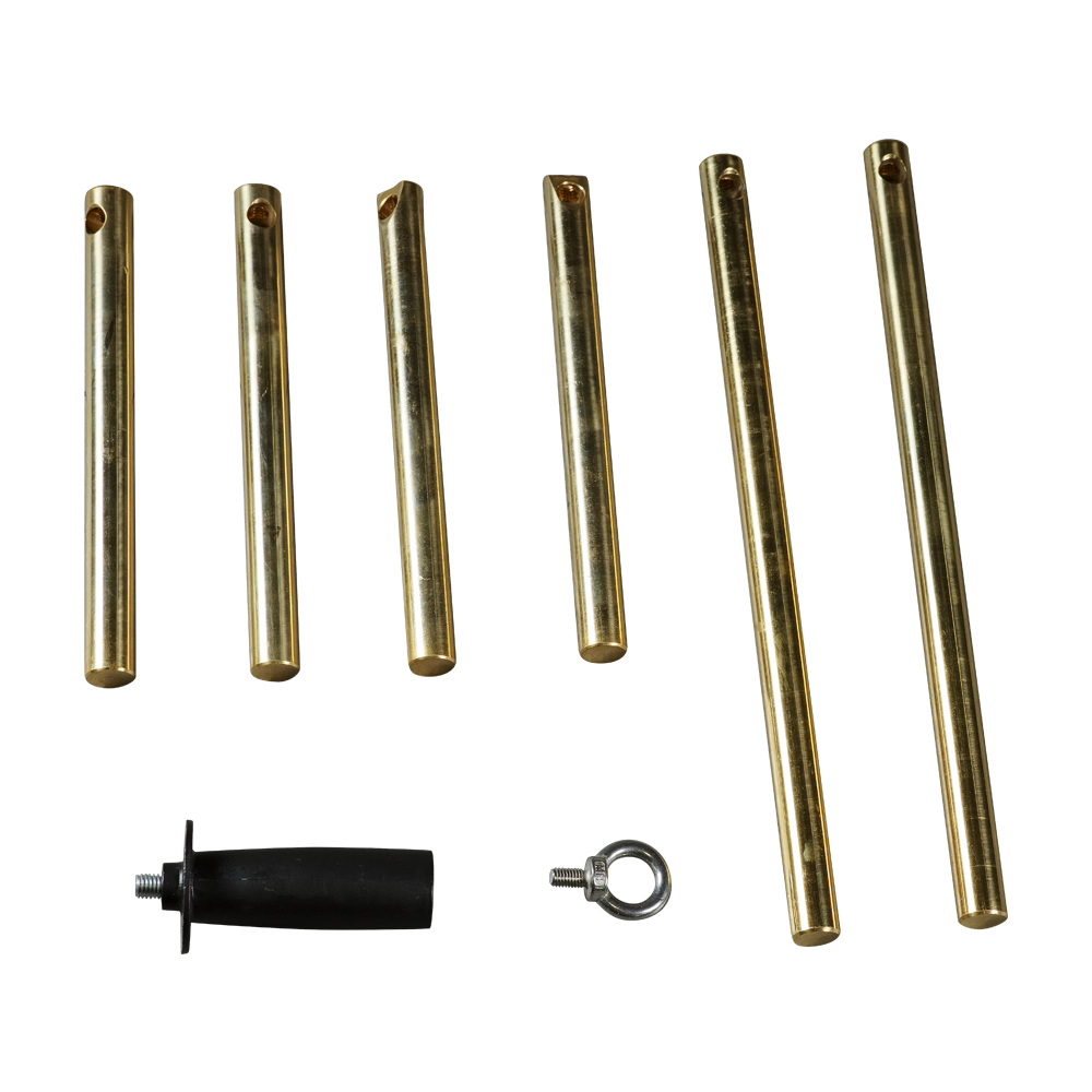 Латунная консоль 350мм, Ø 20мм (2 шт.), Латунная консоль 220мм, Ø 20мм, прямая (2 шт.), Латунная консоль 220мм, Ø 20мм, срезанная (2 шт.), Кольцо для подвешивания (1 шт.), Боковая рукоятка (1 шт.), Пластиковый кейс для хранения и транспортировки. |