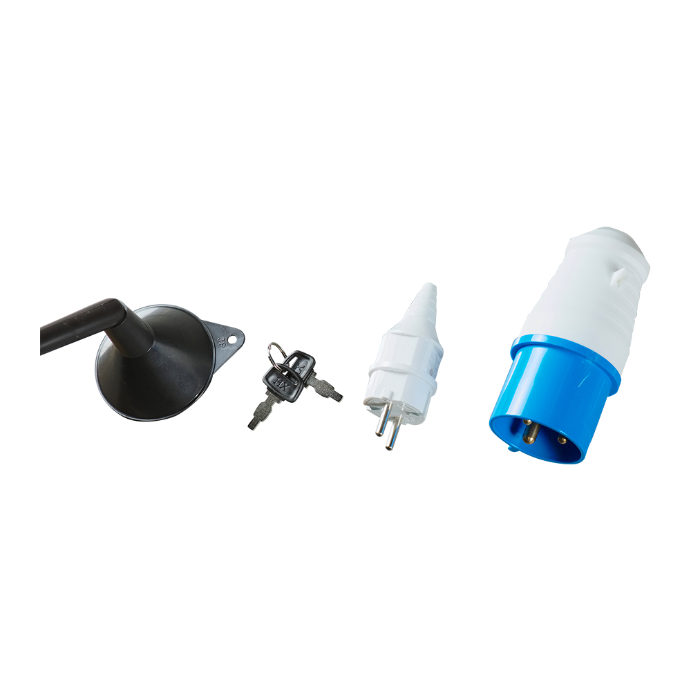 вилка 220 В / 16 А, вилка 220 В / 32 А, свечной ключ, набор инструментов, воронка топливная, инструкция |