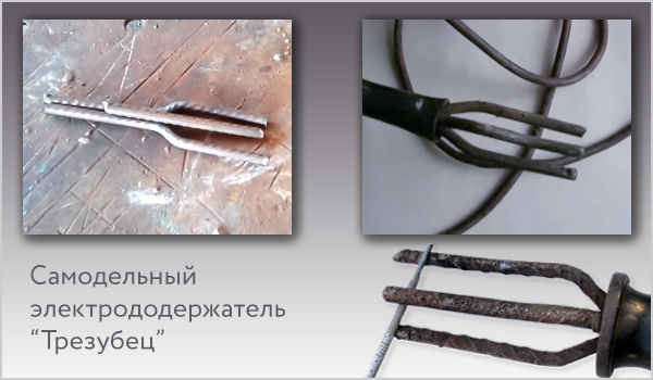 Вы не часто сможете увидеть в продаже устройства такого плана, так как их конструкция опасна для здоровья. Но именно вилочный самодельный электродержатель в виде трезубца наиболее популярен.